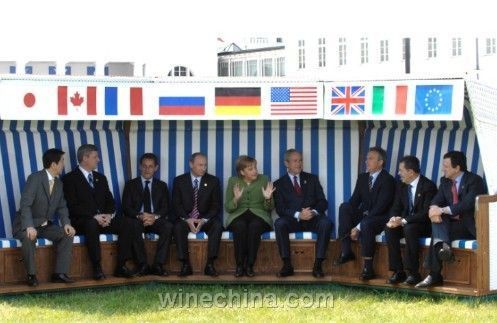 今年在德國北部城市海利根達姆(Heiligendamm)凱賓斯基大飯店舉行的八國集團首腦峰會(G8)上,作為東道主,德國總理默克爾以她親自挑選的一款德國紅酒——埃伯巴赫修道院酒莊(Kloster Eberbach)的一款2003年份Assmannshausen Hoellenberg晚摘型黑比諾,來招待八國首腦。她曾用這款紅酒在今年3月24日晚舉行的歐盟成立50周年慶典晚宴上,盛情款待齊聚柏林的歐盟各國首腦。