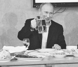 據(jù)英國(guó)《每日郵報(bào)》1月20日?qǐng)?bào)道,日前在圣彼得堡舉行的一次慶祝活動(dòng)上,俄羅斯總理普京再次彰顯了他的男子氣概,與友人們一邊觀看足球比賽,一邊痛飲超大杯啤酒。