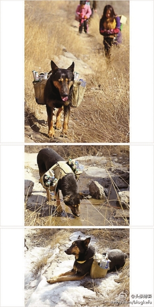 @頭條博客:在河北石家莊抱犢寨山上,經常有一條黑背品種的狗背著酒水爬山,它是在幫自己的主人往山上運貨。它叫波特,主人是位女子,女子的老公在外地打工,經常不在家,該女子又在山上開了一家小店。因為都是崎嶇的山路,波特運酒水運得特別辛苦……