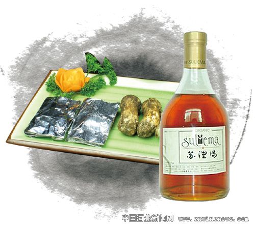 碳烤松茸,就是將松茸在炭火上直接烤制,自然的食材,自然的風味,營養豐富,帶有濃郁的滇邊民族風情。與此相搭配的酒飲,當然也要具有質樸之美和靈秀之韻,產自瀘沽湖畔的蘇里瑪酒可謂恰當之選。“蘇里瑪”是當地家家戶戶待客或自飲的必備飲品,釀制原料包括青棵、大麥、小麥、蕎麥、稗子、玉米、谷子等糧食,以當地多種植物根莖制成酒曲,在篾制容器“日卡”內發酵,繼而裝壇密封,調制可成。其色澤金黃,甘甜清洌,無論其風味、營養,與碳烤松茸都渾然天成,令人垂涎。