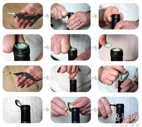 在學會如何開瓶之前,首先需要選擇一款適合的開瓶器。一般說來,常見的開瓶器有四種:T型開瓶器、雙臂式杠桿型開瓶器、侍者型開瓶器和兔耳型開瓶器以及Ah-So開瓶器。我們這里介紹的是使用有“侍者之友”之稱的侍者型開瓶器來開啟靜止葡萄酒。