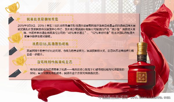 利用平民化文化背景,積極融入“互聯網+”時代,諸多民酒產品一方面頻獲國際大獎肯定,品牌力大增,贏得消費者的認可;另一方面利用靈活、親和力強的特點實施電商化,其勢必會成長為新消費時代的酒類主力軍。