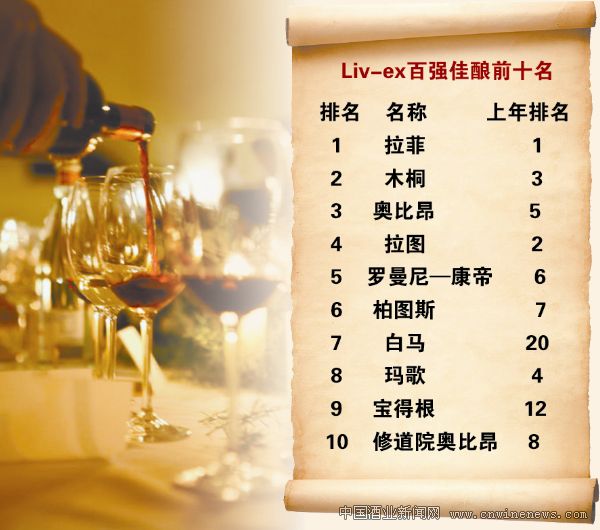 “Liv-ex百強(qiáng)佳釀”通過對過去一年間的佳釀價格、市場需