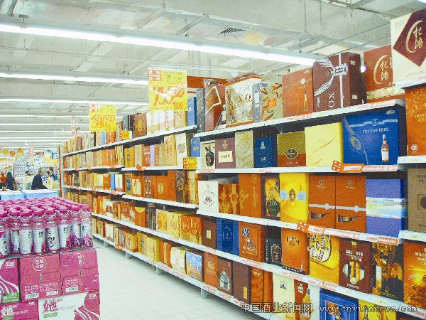 1月10日,《華夏酒報(bào)》記者來(lái)到沈陽(yáng)市區(qū)內(nèi)的家樂(lè)福、樂(lè)購(gòu)、華潤(rùn)萬(wàn)家等超市,各商家都早早設(shè)置了春節(jié)酒品專區(qū),各種酒類(lèi)的買(mǎi)贈(zèng)、降價(jià)等促銷(xiāo)活動(dòng)正進(jìn)行得如火如荼。