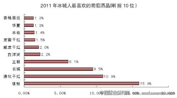 調(diào)查顯示,哈爾濱消費(fèi)者對國產(chǎn)葡萄酒的青睞程度依然很高,盡管近兩年進(jìn)口葡萄酒紛紛涌入哈爾濱市場,但由于消費(fèi)者對其了解和認(rèn)知度不夠,銷量占比和提及率得不到數(shù)據(jù)上的體現(xiàn)。在哈爾濱市場,張?jiān)!⑼ɑ㈤L城等國產(chǎn)知名品牌風(fēng)頭不減,幾乎沒有受到進(jìn)口葡萄酒的沖擊。與2010年相比,張?jiān)!⑼ɑ烷L城的提及率排名沒有發(fā)生變化,依然占據(jù)前3名。