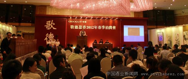 北京歌德盈香2012年春季拍賣會6月3日于昆侖飯店圓滿落槌,本次拍賣是國內迄今為止規模最大,拍賣酒種最豐富,成交額最高的酒類專業拍賣會。本次拍賣會集中外名酒5大專場,總成交額逾1.8億元。為期兩天的拍賣會場面異常熱烈、高潮迭起,成為今年春拍市場上一道獨特的風景線,同時也再度開啟了中外名酒在國內規模化及專業化拍賣的新篇。