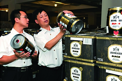 2012年是體育大年,歐洲杯、奧運會等精彩賽事剛剛過去,殘奧會、F1大獎賽和中國網球等重大比賽又將拉開大幕。激烈的比賽催旺了市場上啤酒銷量的增長。據統計,今年1月至7月,寧波保稅區申報進口啤酒達9.54萬升、貨值14.71萬美元,分別是2011年同期的3.86倍和3.97倍,另有3.07萬升、4.71萬美元啤酒剛剛到港,即將申報進口。進口啤酒中以德國黑啤最為著名,占申報進口量的78.0%。針對進口啤酒的猛增,寧波檢驗檢疫局加強檢驗檢測力量,確保進口啤酒的質量,保障進口啤酒快速通關。
