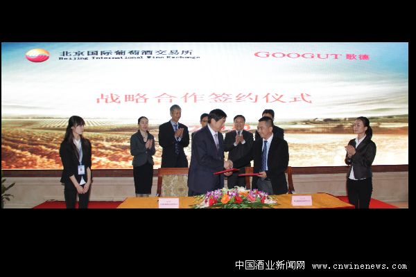 2012年10月20日下午,中國最具實力的葡萄酒交易所——北京國際葡萄酒交易所與中國最具規(guī)模的專業(yè)酒類拍賣公司——北京歌德盈香拍賣有限公司在北京國際葡萄酒交易所交易大廳簽署了戰(zhàn)略合作協(xié)議,拉開了二者在高端酒品交易及拍賣等方面合作的序幕。之后于當天下午聯(lián)合舉辦了中外投資級酒品推介會暨品鑒會,向在場的100多位嘉賓展示了將于11月17日舉辦的 “遺世佳釀 尊享醇芳”—2012金秋中外名酒專場拍賣會上拍賣的逾百款中外珍稀酒品。無論是二者新穎的合作方式,還是酒類收藏投資市場上難得一見的酒品本身,均引起了在場嘉賓及媒體記者的極大興趣。