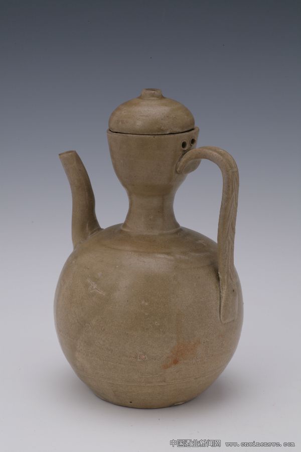 這把擺在面前的壺,我一直找不到合適的名稱。雖然它已經(jīng)有一個(gè)通用的官方名字:五代青釉杯口執(zhí)壺。用杯口兩字來概括此壺的特點(diǎn),我認(rèn)為是經(jīng)驗(yàn)性的無趣,的確,它的口部形如杯子,但卻不是常見的的杯子,我看過后的第一印象是——標(biāo)準(zhǔn)葫蘆型的執(zhí)壺。葫蘆有著不倒的造型,它結(jié)的子多,那是吉祥,為什么中國的仙人們總要腰間掛個(gè)葫蘆呢?上面是圓的蓋,下面是圓的腹,頸項(xiàng)收縮聯(lián)系上下兩個(gè)圓,生動(dòng)的把兩個(gè)圓激活,花好月圓、圓圓滿滿就是它的寓意吧。更為奇怪的是,那杯形口后面把柄上方的兩個(gè)小孔,有人問做什么用,難道是煮酒論英雄時(shí)溫酒的出文章來源中國酒業(yè)新聞網(wǎng)氣口?喝著黃酒,讓微微的酒香溢出,空氣中散發(fā)著迷離的酒分子,一下子對話也顯得溫馨而有趣起來。是啊,這個(gè)壺完完全全是一個(gè)精心之作,一千多年后,再也找不到一個(gè)相同的壺了,顯得稀罕而個(gè)性。更為有趣的是,如果放置在時(shí)空的長河里,它恰恰介于唐宋之間,細(xì)細(xì)地比對一下,你會(huì)恍然大悟,這壺處于兩個(gè)最有特色的朝代中間,確保唐人豐腴美態(tài)的遺風(fēng),又打開宋代對曲線條的癡迷,它承上啟下,沒有個(gè)性還真不行!