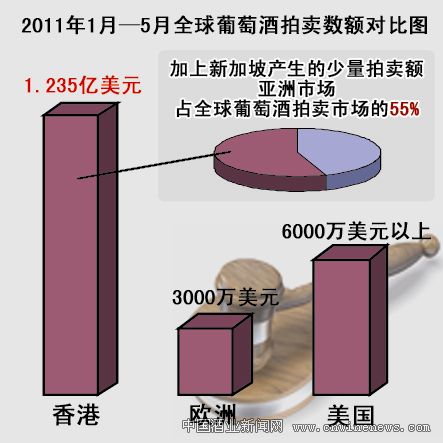 2010年,香港葡萄酒拍賣額達1.6億美元,占全球拍賣總額的40%,不僅超過了美國紐約市場拍賣額(占全球的23%),而且比整個美國市場(占全球的36%)還要高。