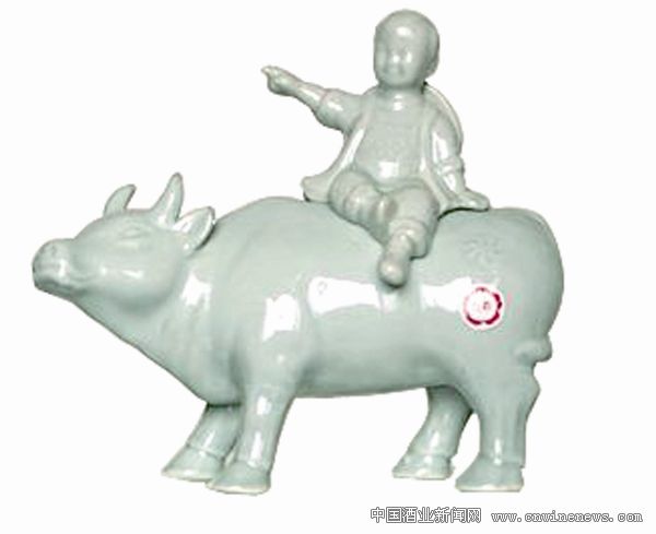 “這個(gè)酒瓶可以盛酒3斤。”牛腹是盛酒的容器,牛背上的牧童是瓶口,不像酒瓶更像工藝品,造型栩栩如生。黎福清說(shuō),他能聽(tīng)見(jiàn)牧童在說(shuō)“酒家就在前方不遠(yuǎn)處的杏花村”,而他就像是那個(gè)沽酒之人。
