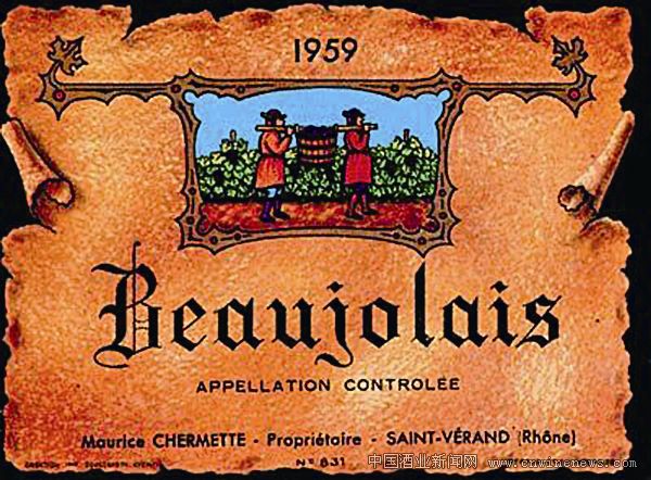 兩位老人你一言我一語跟我講解著這款酒標的故事。原來,1959年是個葡萄豐收的好年景,索恩河畔的奧邁爾酒莊的酒農們高興地天天在葡萄園里唱歌跳舞。等到采摘時,好葡萄堆成了山,來不及往外運。于是只好兩天采摘兩天運輸。到了運輸的那天,整個葡萄園里是一片繁忙,酒農們先把葡萄裝進桶,然后兩人一桶一桶往外挑,一片豐收景象。有一天中午休息時,杜桑發現一個摘葡萄的姑娘坐在葡萄園里畫畫,于是走過去一看,嘿,竟是剛才酒農們熱火朝天運葡萄的景象。杜桑便決定在這幅畫的基礎上繪制一款1959年的酒標,以紀念這個豐收的好年景。