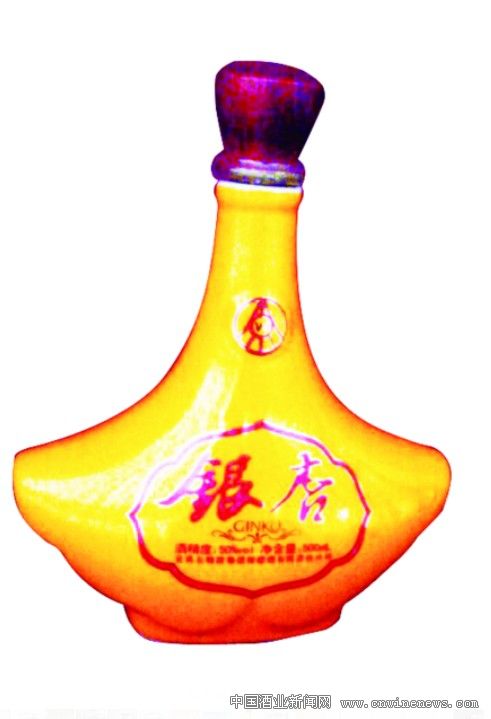 在黃色的瓶頸上是一個圓型的五糧液酒的商標圖案,在木質的瓶蓋頂端也凹刻著商標,瓶身上一個寬9厘米,高7厘米的圖標中,突顯“銀杏”兩個大字。字為紅色鑲細金線,在黃色的底面上更加突出,而“酒”字又是純金色,更加吸引人的眼球。而下面的“酒精度”、“凈含量”及生產公司的文字,又均為紅色。金、紅兩種顏色形成三種裝飾,整體顯得層次分明,呈立體美感,入眼入心。