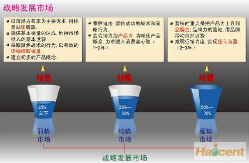 如果企業(yè)要獲取競爭優(yōu)勢,它必須選擇它所要獲取的競爭優(yōu)勢的類型以及活動于其中的范圍。“事事領(lǐng)先,人人滿意”的想法只會導(dǎo)致平庸戰(zhàn)略和低于平均水平的經(jīng)營業(yè)績,因為它常常意味著企業(yè)根本沒有任何競爭優(yōu)勢。因此,在不同類型的市場必須有不同的關(guān)鍵指標(biāo),以保證所有的市場運(yùn)營活動能夠簡單聚焦,從而完成第一層面的匹配。弱勢市場的關(guān)鍵指標(biāo)——銷量突破、終端規(guī)模大幅上升,有了一定的銷量和鋪貨率才能確保企業(yè)在弱勢市場上站住腳,而不至于被輕易地清除出市場。均勢市場的關(guān)鍵指標(biāo)——心理份額的提升、產(chǎn)品力的落地、盈利能力的提高。形成與競爭對手勢均力敵的能力必須擁有相當(dāng)數(shù)量的忠誠消費(fèi)者,同時還要通過產(chǎn)品力的提升來增加贏利產(chǎn)品的銷量,以便消化均勢市場的資源投入。強(qiáng)勢市場的關(guān)鍵指標(biāo)——品牌力落地、扭虧為盈的產(chǎn)品結(jié)構(gòu)。在強(qiáng)勢市場上企業(yè)已經(jīng)從挑戰(zhàn)者轉(zhuǎn)向市場領(lǐng)導(dǎo)者地位,品牌力已經(jīng)成為企業(yè)贏利的重要武器,該類市場的關(guān)鍵標(biāo)志就是不再占用總部資源,而是輸送“利潤”。