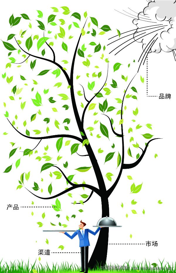采用一個形象的比喻:白酒市場就好比一棵大樹,產品是葉子,品牌是風,渠道就是樹底下拿著兜子左右跑動隨時接葉子的人,消費者則是消費葉子(酒)的人。產品強則樹上的葉子就多;品牌強則風就大,葉子掉的就多;渠道強則葉子接的也就多。