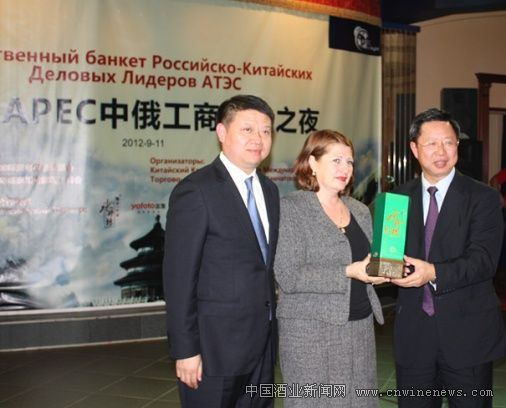 圖注:水井坊•菁翠作為“APEC中國之夜唯一指定白酒”亮相APEC“2012中俄工商領袖之夜(中國之夜)”