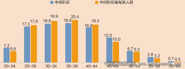 不同年齡段人群中葡萄酒消費(fèi)者的比重(%)