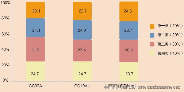 由于受到外來文化的影響和所受健康教育較多,中國的年輕消費(fèi)者更傾向于飲用度數(shù)較低的葡萄酒。從葡萄酒消費(fèi)群體的社會階層地位來看,2010年第一階層的比例比2009年增長4.2%,一二階層的比例則增長到48%(見圖8)。葡萄酒消費(fèi)向中間及以上的權(quán)貴階層傾斜的趨勢更加明顯。
