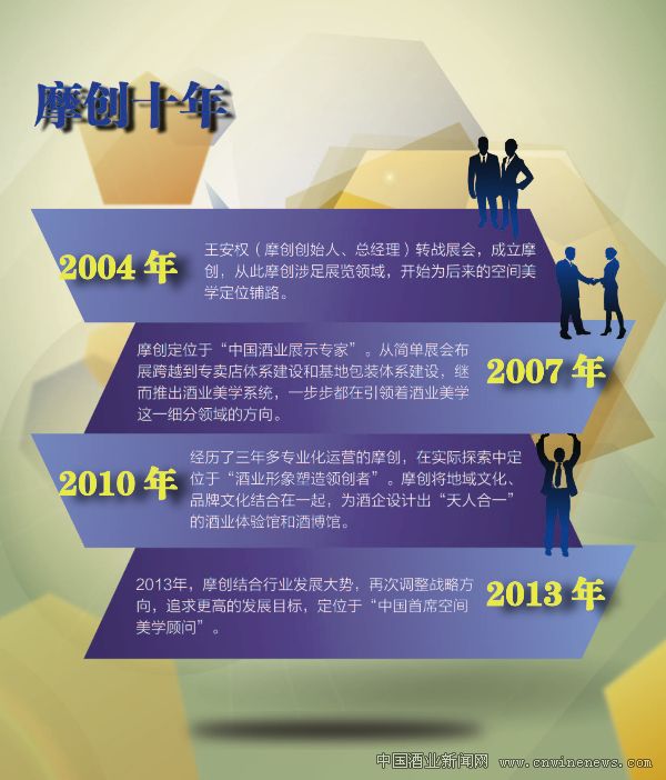 到2007年,摩創的生意越做越大。就在生意非常紅火的時候,王安權召集全公司人召開了一次正式的會議——南草坪會議。這次會后,摩創實現從多元化經營過渡到酒業專業性公司。在了解摩創的業內人士看來,摩創發展的10年就是中國酒業發展的10年。2007年的南草坪會議之于摩創來說,相當于當年紅軍在長征途中的“遵義會議”,具有重要的轉折性意義。據了解,當時摩創已經涉足房地產、汽車、酒業等多個展覽細分領域,并且都在持續盈利。但是,眼光超前的摩創人在思考自己未來的時候,追求的不是“大而全”,而是“大而精”。總經理王安權認為,專業化才是摩創未來在競爭中立于不敗之地的核心實力。