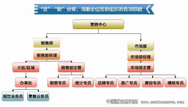 “營”“銷”分離,清晰定位營銷組織的各項職能。大一統(tǒng)的營銷中心僅僅注重企業(yè)的市場銷量提升,容易忽視銷售管理和市場基礎建設。通過對營銷中心組織機構的“裂變”,清晰定位營銷組織中銷售部與市場部的核心職能;通過對營銷中心崗位職責的梳理,明晰營銷團隊每個成員中的職責定位和發(fā)展方向,從而做到各司其職、各負其責。