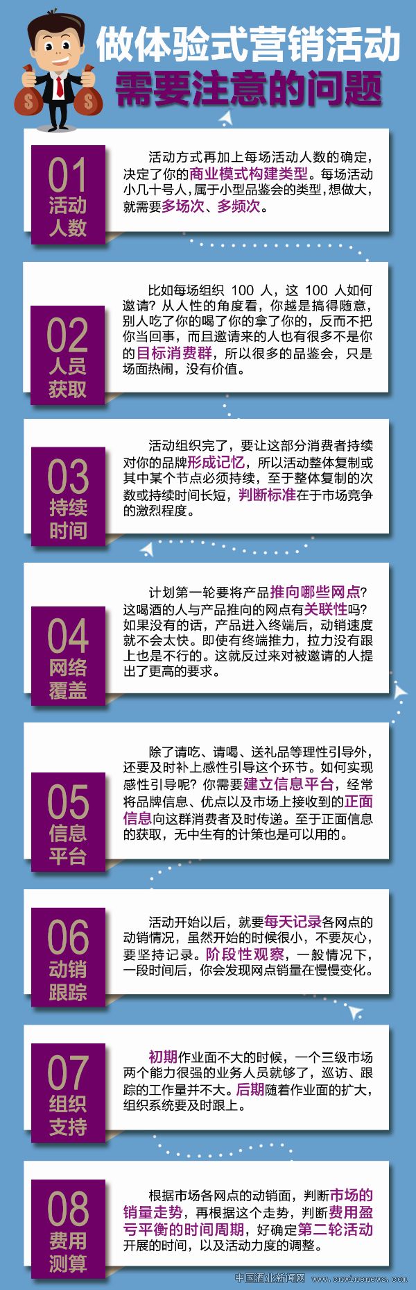 酒水行業的體驗式營銷戰術系統構建,需要在以上案例的基礎上實施縱深和寬度兩個方面同步升級,因為行業競爭的激烈程度越高,縱深和寬度就越需要延展。這就意味著你要在新環境下做好體驗式營銷,必須比以往多掏出許多銀子——資源的占用成本大大增加了。