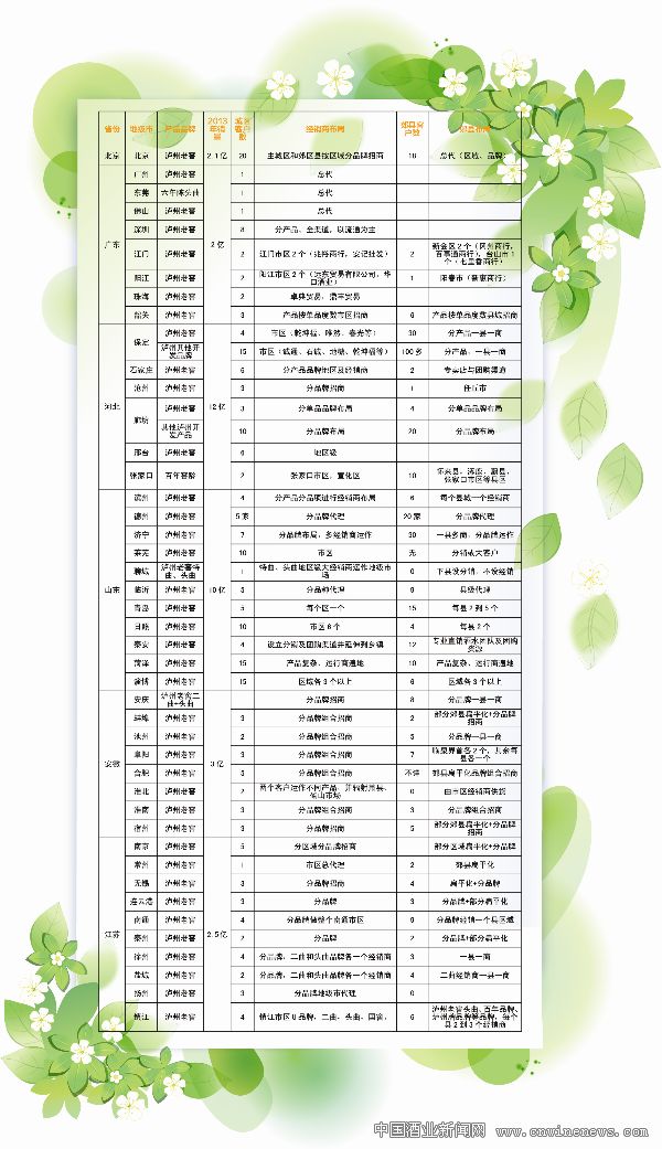 百萬級市場:瀘州老窖百萬級市場有100多個,一般為1~2個客戶分品牌覆蓋全區域,同時也有部分郊縣獨立招商;