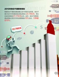其中,2015酒業銷售目標指向預增長10%左右,根據《華夏酒報》記者查詢的老白干酒年報的銷售規劃,公司營收預計在2015年達到22.78億元。