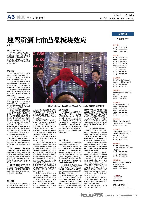 “這次迎駕貢酒文章來源華夏酒報成功發(fā)行股票并上市,對于我們中國酒類企業(yè)進入證券市場實現(xiàn)快速發(fā)展,具有很好的借鑒和促進作用,為中國酒類行業(yè)的發(fā)展再次增添了濃墨重彩的一筆。”王延才說。