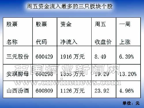 釀酒食品板塊一周主力資金凈流出約2.52億元。周五資金凈流出約4701萬元。周五資金流入最多的三只板塊個股分別文章來源華夏酒報是:三元股份、安琪酵母 、山西汾酒 。