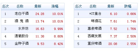 釀酒板塊上漲5%
