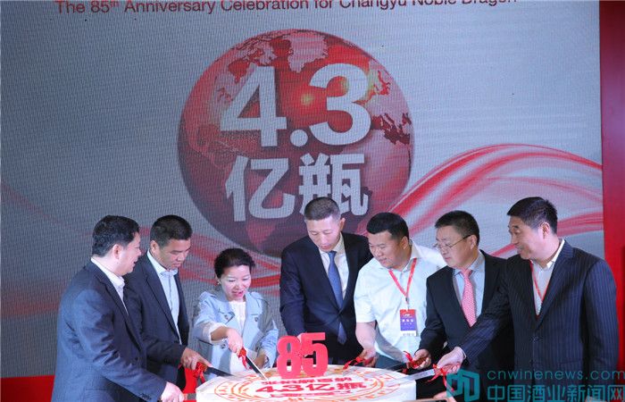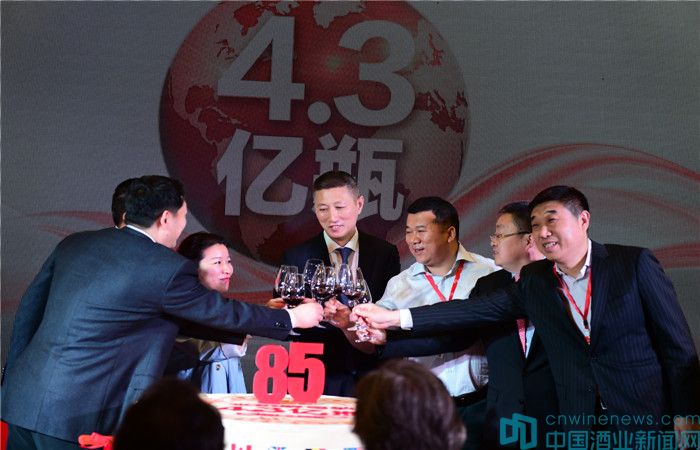 張裕總經理周洪江和高層團隊、沃爾瑪中國區采購部高級總監萬雪梅以及山東、浙江、福建等地的張裕經銷商代表共同上臺,共同切開解百納85周年紀念蛋糕,與在場嘉賓舉杯慶祝。