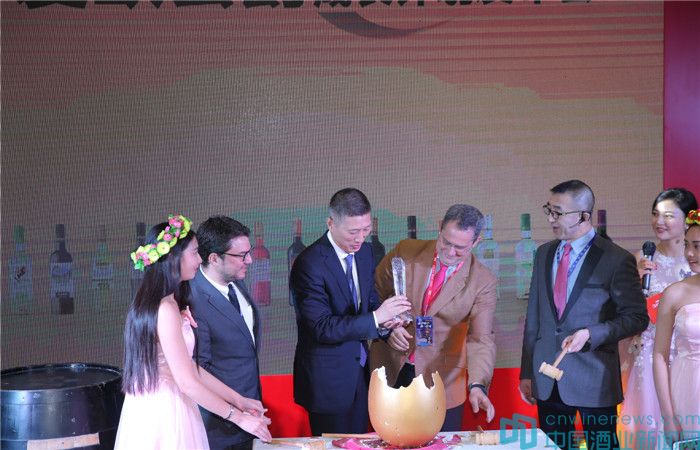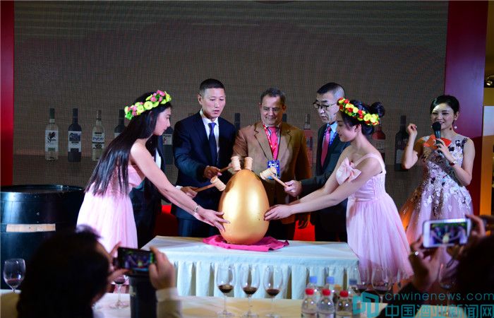 隨后,張裕總經理、愛歐公爵董事長周洪江、西班牙駐中國大使館經濟商務參贊Jose Luis Kaiser,以及愛歐公爵品牌大使何塞和眾位嘉賓共同上臺,砸開一枚金蛋,一座刻有“西班牙葡萄酒中國第一品牌”的獎杯出現在眾人眼前,寓意著張裕要將愛歐公爵打造成中國市場排名第一的西班牙葡萄酒品牌的愿景。