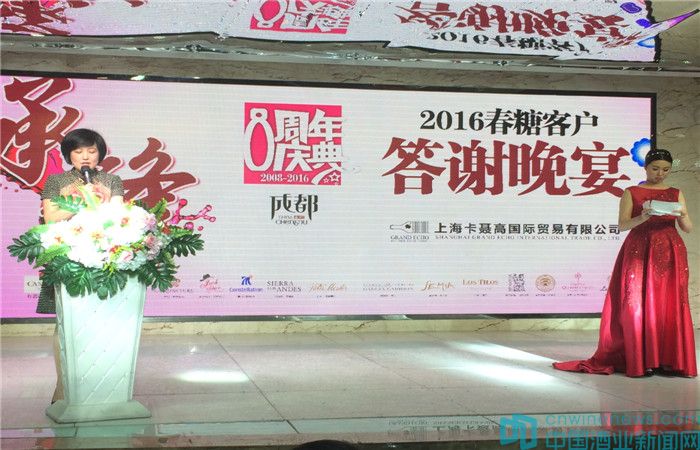 晚宴由上海卡聶高董事長林小芬首先致辭,對遠道而來的嘉賓及酒商們表示熱烈歡迎,與大家一起回顧八年來上海卡聶高成長的點點滴滴,分享上海卡聶高的文化與使命,并對上海卡聶高的品質(zhì)作出承諾,更加展示了上海卡聶高對未來發(fā)展的信心與自信。