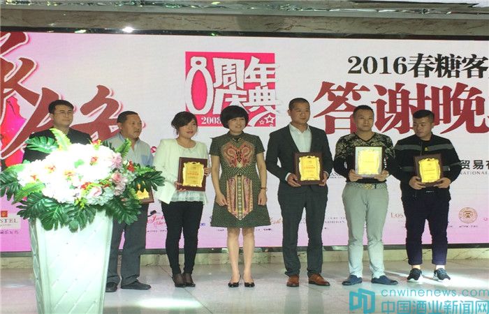 聚光燈下,精美的生日蛋糕由上海卡聶高常務(wù)理事陳一心緩緩推出,合著快樂的歡唿聲,董事長林小芬、總經(jīng)理王友全、法國Castel中國區(qū)總裁畢杜維、南非歐威克斯酒業(yè)集團首席釀酒師Ben一同為上海卡聶高八周年生日握刀。緊接著,各位嘉賓上臺講述自己與上海卡聶高的淵源,并送上生日祝福。隨后,董事長林小芬為上海卡聶高6位優(yōu)秀經(jīng)銷商無錫安匯鑫貿(mào)易有限公司、海寧福鑫貿(mào)易有限公司、淄博卡聶高貿(mào)易有限公司、平陽水頭寰宇名莊、福建石獅市永得利名酒商行、蘇州華億酒業(yè)進行頒獎。