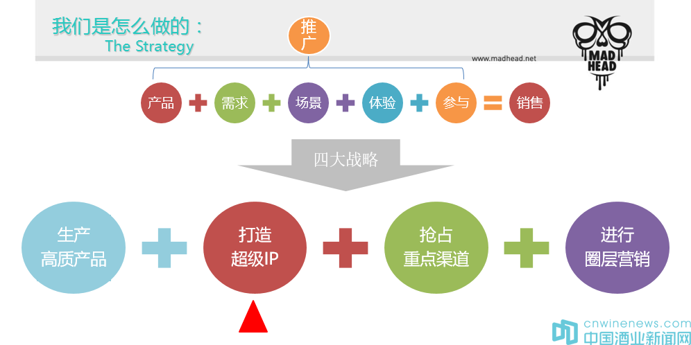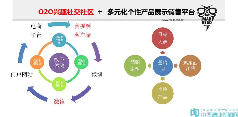 曼哈迪酒業的戰略是強占領重點渠道,首先是跟電子商務合作,再者是通過融入互聯網+的概念,線上線下做活動,來引導他們做一些現場的體驗、我們現在借助互聯網平臺方式,讓大家一想到PARTY就想到我們的酒,目前跟奇葩APP和CBD在合作,讓大家知道自調雞尾酒并不是遙不可及的。