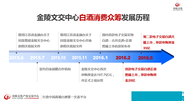 怎樣打破這樣尷尬局面?一種全新的模式,我們正在嘗試。這個平臺是江蘇省人民政府批準,由國家工商行政管理總局核準的公共教育場所。2015年6月份開始籌備,到2015年11月份正式產品上線,我們跟它合作是從1月12號第一款產品古井貢品正德窖藏正式上線間。目前我們上了兩款產品。定位只做60度酒,只跟八大名酒廠合作。