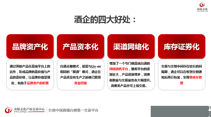 我們相信,隨著平臺逐漸壯大,產品逐漸增多,消費者數量與交易量也會大幅度提升,消費類產品也可以上線交易,我們前面做的是限量版收藏,后面可能做的消費類產品也可以在這個平臺上進行發售。庫存證券化,交易與交割中間存在較長的間隔期,酒企可以在受到交割的時候進行零庫存管理。