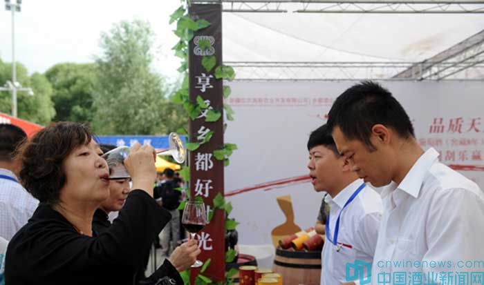 與會嘉賓在葡萄酒節上品鑒葡萄酒。(魏海 攝)