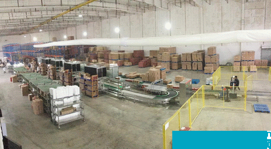 據(jù)介紹,互聯(lián)網(wǎng)智能倉儲中心目前配備了一條回型分揀流水線,單線38米長,流水線上貨物太多,打包臺無法消化時,貨物將分揀在流水線上自動循環(huán)。流水線旁有10個含物料存放的合包臺,10名工作人可以對照電腦發(fā)單指令包裝貨物,貼發(fā)貨單,順手放至運輸線上。與合包臺一米多的距離,是6組流利揀貨架,自動精確補貨。最里端還有9組四層高位貨架充足備貨。