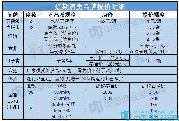 以下是近期酒企調(diào)價(jià)明細(xì)表: