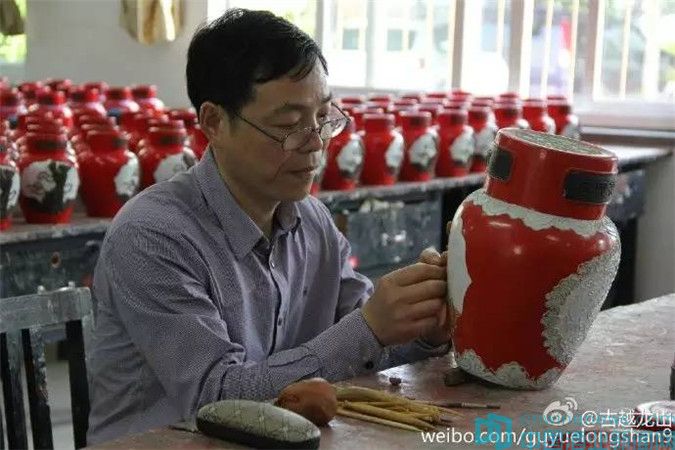 古越龍山工藝浮雕酒分公司作為傳承基地,對紹興花雕制作工藝進行傳承、保護與弘揚。公司有員工80人,其中高級工藝美術師2名,工藝美術師2名,技師7名,技工62人,是一支專業的花雕工藝制作團隊。