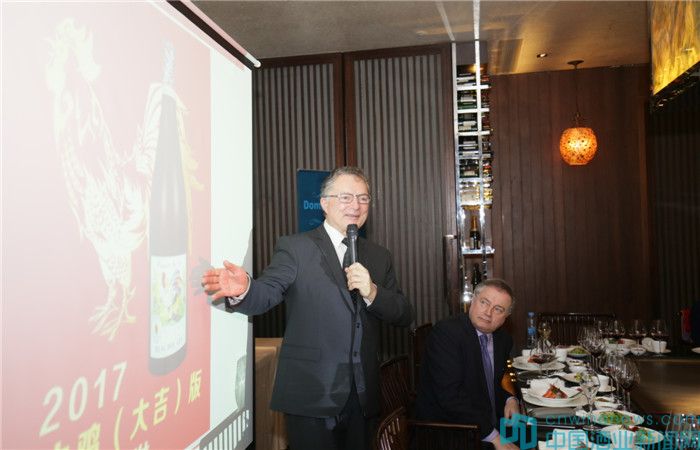 皮龍酒莊莊主多米尼克·皮龍正在介紹習悅紅葡萄酒