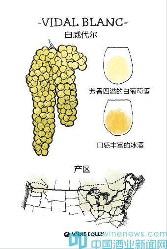 其他:該品種在20世紀30年代誕生于法國,用其釀造的最出名的葡萄酒莫過于冰酒了。加拿大的尼亞加拉半島(Niagara Peninsula)和安大略省所產的威代爾葡萄酒最為有名,而且每個年份都會釀造冰酒。事實上,世界上最大的冰酒生產商是云嶺酒莊(Inniskillin Wines),而威代爾則是該酒莊葡萄園內種植的重要葡萄品種。