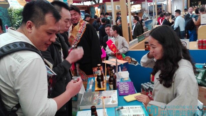 在眾多的參展商中,香格里拉精釀啤酒有限公司的展位可謂是一道風(fēng)景,獨具藏族特色的展館布置以及工作人員身著藏族服飾的集體亮相都成功地吸引了前來參展的人的目光。而他們的展位前也一直圍繞著三五成群的人,他們或問詢或品嘗,都對這幾款從香格里拉來的啤酒贊不絕口。