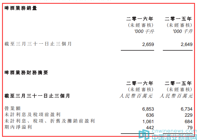 對(duì)于一季度業(yè)績(jī)表現(xiàn),華潤(rùn)啤酒表示較2015年同期有顯著改善,主要原因是淡季中檔及以上啤酒銷量增長(zhǎng)帶來(lái)營(yíng)業(yè)額上升,同時(shí)原材料成本降低。另外,銷售及分銷費(fèi)用在期內(nèi)也有所下降。