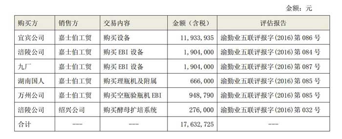 7月22日,重慶啤酒(600132)發布系列公告稱,公司向寧波威馬轉讓其所持有的大梁山公司股權及“國賓”(繁體)商標(含設計著作權)的議案已獲董事會通過,股權轉讓對價仍為8200萬元。此外,公司同日披露其六家子公司向嘉士伯工貿及重慶啤酒集團紹興有限責任公司采購機器設備的關聯交易信息。公司表示,此舉將有利于公司降低固定資產采購成本,加快零星設備更新,從而保障其旺季生產正常進行。上述關聯交易明細如下表所示:
