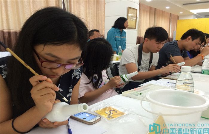 同學們人手一支雪白的酒樽,用清水濕潤毛筆后,挑選喜愛顏色的丙烯顏料,一筆一畫地細心勾勒出精緻花紋。他們時而運筆如飛,時而停下畫筆、構思自己的設計圖案,將各自對雪花啤酒的印象以及對生活的感悟描繪在酒樽上。會堂中不時傳來陣陣歡笑,同學們都樂在其中,紛紛與自己的杰作合影留念。
