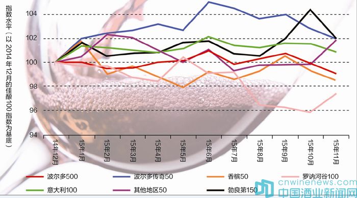 截至2015年11月底,波爾多500(Bordeaux 500)指數(shù)下跌了0.9%,而Liv-ex1000的三大次級(jí)指數(shù)卻達(dá)到了2015年的最高點(diǎn)。