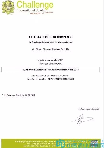該葡萄酒大賽是由法國組織的國際最大規模、最高品質并由ISO9001國際認證的葡萄酒挑戰賽。此次賽事中有來自世界37個國家的4162余款葡萄酒競相角逐,并由700位來自世界各地的葡萄酒專家及資深葡萄酒愛好者評定出了最后贏家。