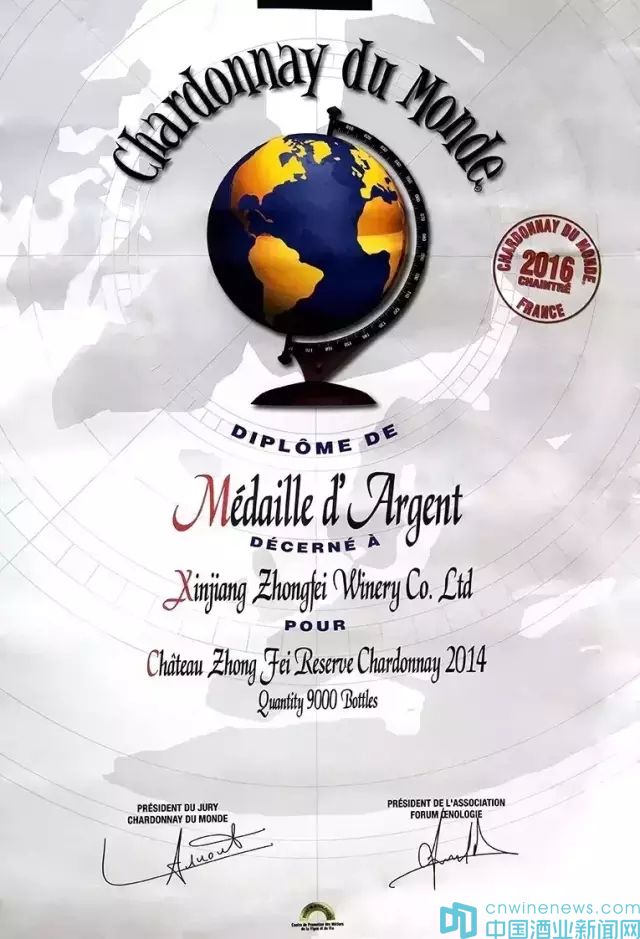 近日,在世界最著名的霞多麗葡萄酒賽事——2016年世界霞多麗大賽中,新疆中菲酒莊2014霞多麗干白葡萄酒奪得銀獎。